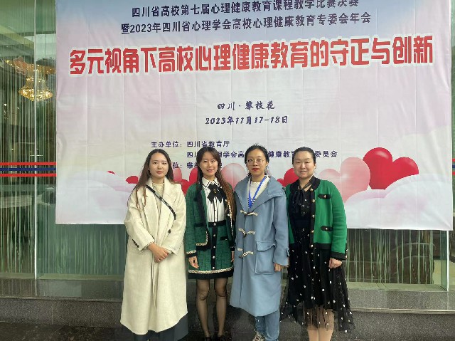 第七届四川省高校心理健康教育课程教学比赛暨2023年四川省高校心理健康教育专委会年会于2023年11月16日—18日在攀枝花学院召开。我校心理健康教育中心教师李嘉雯、查雨竹和二级学院心理工作室负责人代表徐同、罗米娜参加会议。
