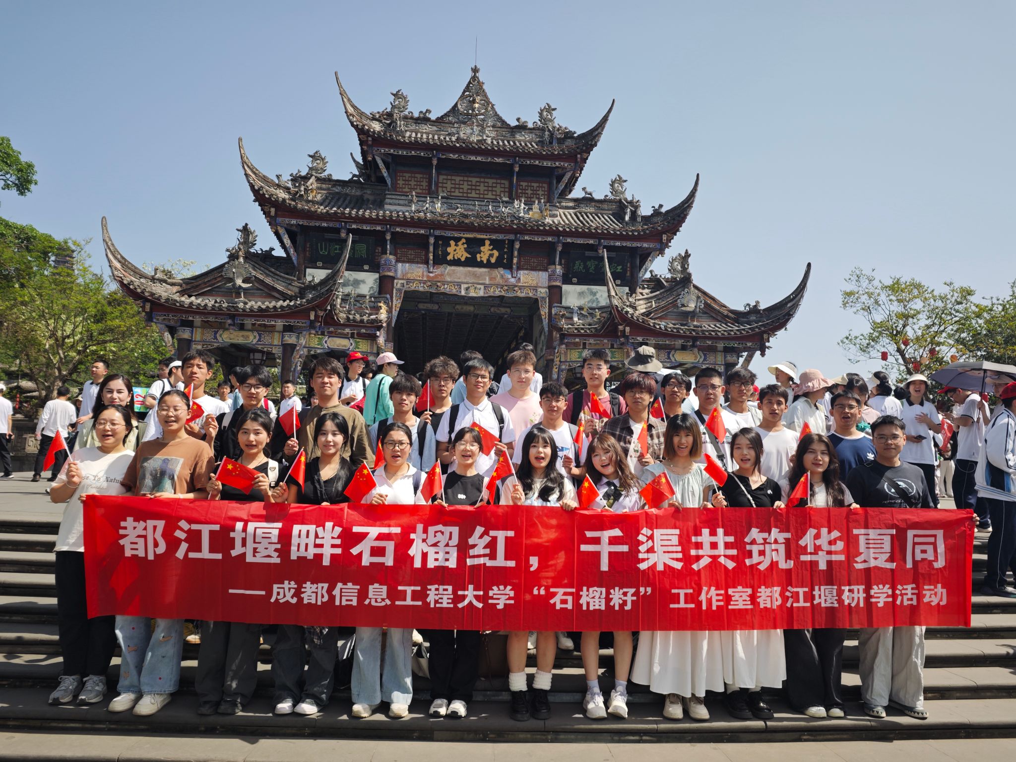 【本网讯】4月19日,成都信息工程大学“石榴籽”工作室组织各民族学生代表奔赴都江堰水利工程,开展了一场意义深远的研学活动。此次活动以“都江堰畔石榴红,千渠共筑华夏同”为主题,将古老水利智慧与新时代民族团结教育紧密相连,为莘莘学子带来一堂别开生面的思政大课。