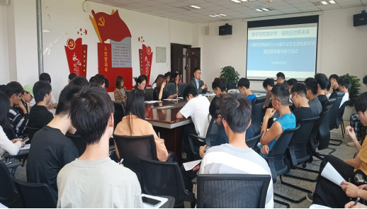 为进一步加强诚信教育,引导学生树立诚实守信意识,确保学院每位享受国家助学贷款政策的毕业生按时还款。5月9日上午10:00,计算机学院在信达楼A311举行了毕业生生源地助学贷款还款承诺书签字仪式。学院党委副书记、纪委书记厉威成,学院资助管理老师余弘丽,毕业生辅导员岳旭媛、曹佳阳,2024届生源地助学贷款毕业生参加。