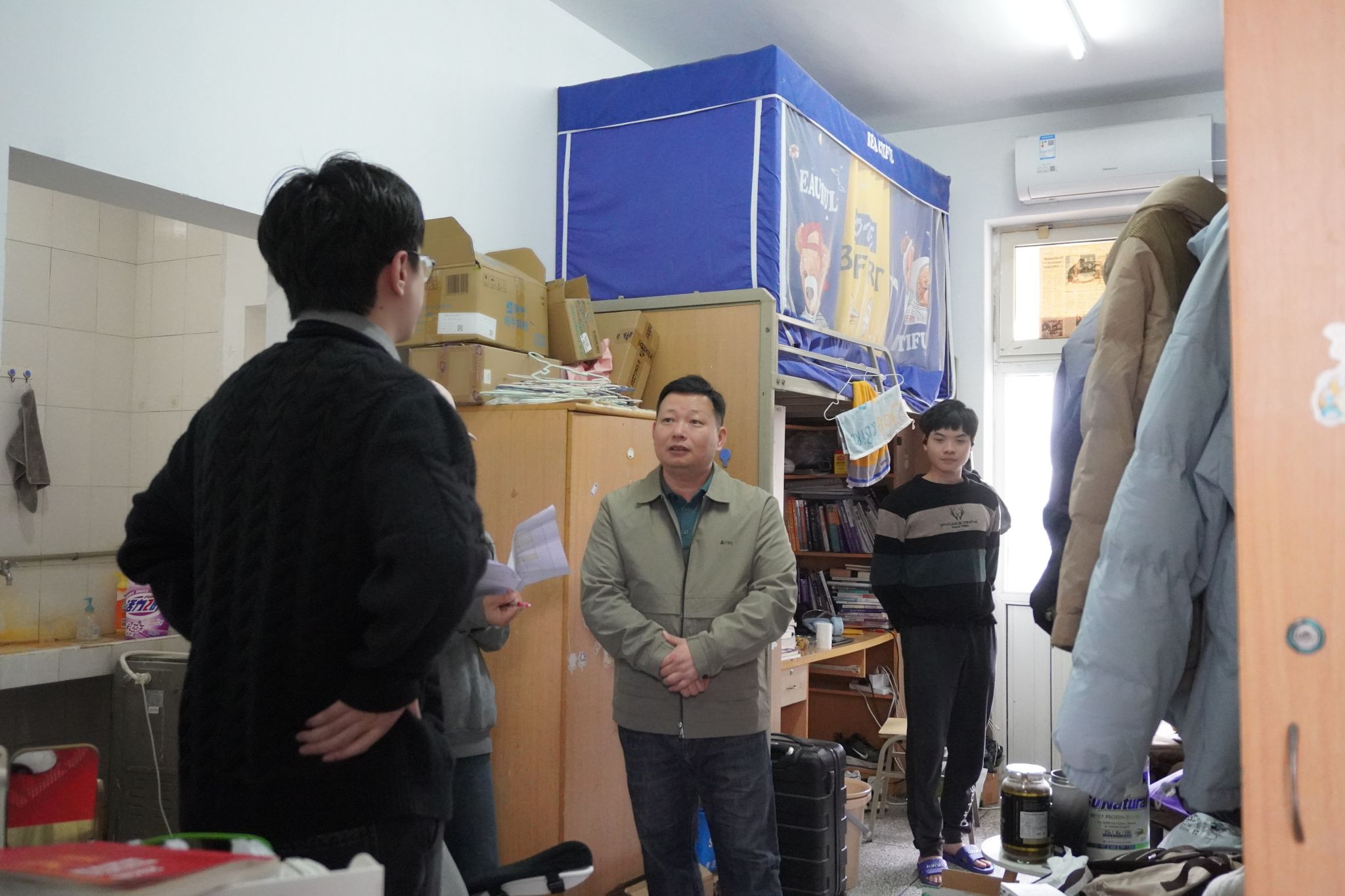 本次检查覆盖学院多楼栋多楼层学生宿舍,学院领导与辅导员们重点排查了违规电器使用、私拉乱接电线、消防通道堵塞等安全隐患,并对宿舍卫生状况进行了细致查看。检查过程中,林细俤与同学们进行了亲切交流,耐心讲解了宿舍安全的重要性,叮嘱大家要牢固树立“安全无小事”的责任意识,严格遵守学校规章制度,共同维护宿舍安全。针对检查中发现的个别卫生死角与内务整理问题,朱正华现场提出整改意见,并鼓励同学们从日常点滴做起,鼓励同学们养成良好的生活习惯。